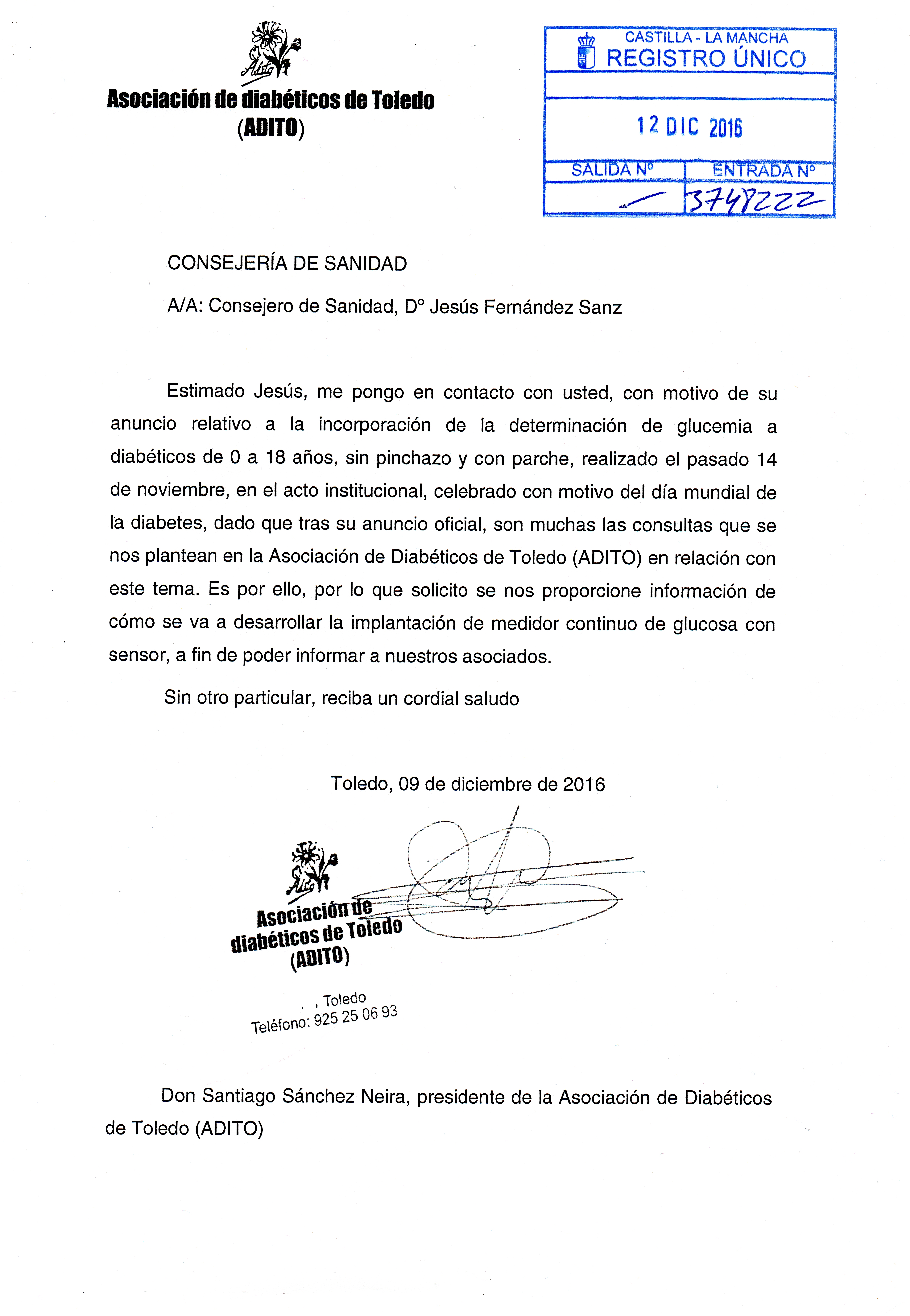 testigos cada dia de la gran calidad profesional y humana de todas estas personas. ADITO se pone a disposicion del SESCAM y