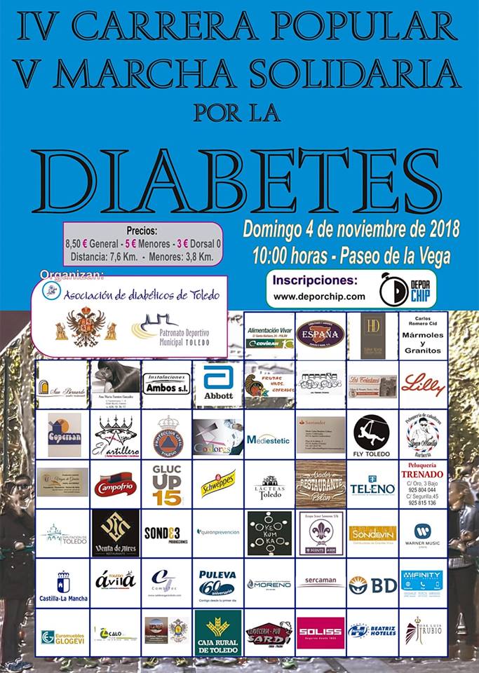 El proximo domingo 4 de Noviembre celebraremos, un año mas, la tipica carrera y marcha solidaria por la Diabetes. Esta actividad se encuadra dentro del conjunto de actos relativos al Dia